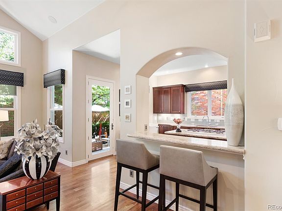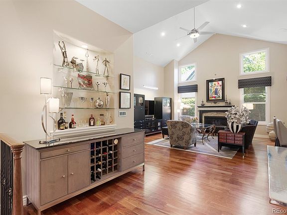 Totally maintenance free, country club living at its finest. This immaculately maintained three-bedroom, five-bath home offers the largest floorplan in the Villages at Cherry Creek Country Club, with a total of 5,400 square feet, including nearly 4,800 finished space. Many designer features abound, including granite countertops, hardwood flooring throughout the main floor; in-wall speaker system; and custom window treatments, and ceiling fans. The main level boasts a main-floor master with ensuite five-piece bath and large walk-in closet; spacious gourmet kitchen that includes a gas cooktop island, high-end appliances, pantry closet and butler pantry, and separate eating area; a beautifully appointed 17-foot dining room. A study with bay window and glass French-door entry; great room with gas fireplace and vaulted ceiling. The second story contains a second master suite with five-piece bath and large walk-in closet and another large bedroom, also with ensuite bath and walk-in closet. The lower level offers an oversized rec room with a 15-foot wet bar that includes a dishwasher, bar TV, and two Optimist wall-mounted electric fireplace features; a large-screen TV area with surround sound and electric fireplace; a fully equipped and furnished theater room; wine cellar with custom arched glass door; remodeled powder room; specially designed work and/or craft niche with granite counter and large walk-in storage closet; and large unfinished storage area. The two-car garage has a large wall-mounted storage cabinet and epoxy flooring. The house has two energy-efficient HVAC units and dual 50-gallon water heaters. The maintenance-free exterior includes an ivy-walled, city garden-like setting in the rear yard with ample entertaining and eating space. A must-see home for the discerning buyer. Theater room furnishings included; all other furnishings available for separate negotiation.