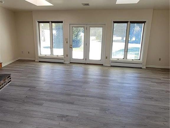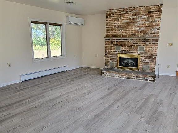 This is not a pet friendly home. This 3 bedroom very nice sized rancher has been upgraded to show very well. Pull into the driveway and you will be greeted by the home on your left. The home has a 2 car garage that is oversized and plenty of space for cars and extra storage. Come through the garage and you will be immediately into the Family Room. This room is spectacular with an electric fireplace and the stone is a great focal point. You will notice it is bright as it has big windows on both sides to allow great natural lights as well as it has a skylight. There is brand new Vinyl plank flooring and a new mini split for heat and Air conditioning. Head into the kitchen where you will find nice appliances, and an eat in country kitchen. Plenty of storage and countertops! From the Kitchen head into the large Living Room complete with new carpeting and a view of the back yard which is peaceful and large. You will come to the bathroom on your right which is complete with a tub/shower unit and has a large vanity to store your items. The 3 bedrooms are nestled in the back corner of this ranch home and all have new carpeting. The basement is the full length of the home and has plenty of storage options. The driveway is shared after the house for other tenants/business space so the only areas you are renting is the home and the yard surrounding the home. This is a month to month lease. NO PETS! Applicants over 18 to have a credit score of 600 or more and no criminal background.