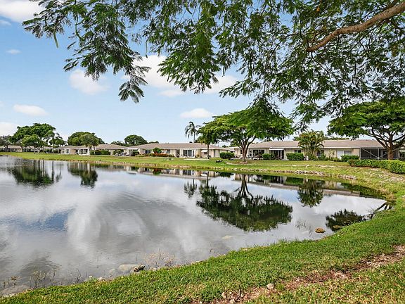 LOCATION * LOCATION * HIDDEN GEM -ENJOY STUNNING WATER VIEWS FROM YOUR PATIO AND LIVING ROOM, SHORT DISTANCE FROM GATED ENTRANCE - STEPS TO CLUBHOUSE WITH OUTDOOR POOL, PICKLEBALL & TENNIS COURTS, ACROSS FROM BOCA SHOPPES & RESTAURANTS, 55+ WELL MAINTAINED COMMUNITY, ROOFS & ROADS REPLACED WITH IN LAST 3 TO 4 YEARS,, 2 BEDROOM SPLIT PLAN, 1 BATH (CONVERTIBLE FOR ADDED 1/2 BATH) LARGE MASTER BEDROOM, LOTS OF CLOSETS, EAT-IN KITCHEN, INSIDE W/D, 2024 A/C, INSIDE W/D, SEPARATE STORAGE ROOM, 2 ASSIGNED PARKING SPOTS DIRECTLY IN FRONT, WELCOME TO YOUR NEW HOME!