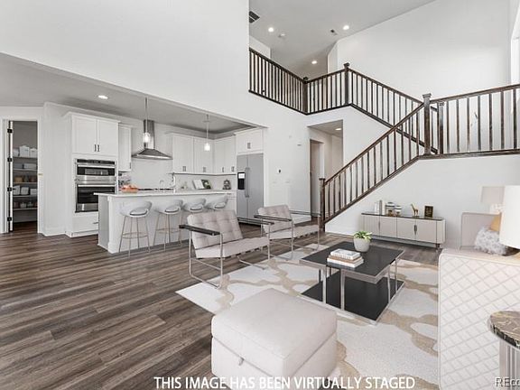 MLS#6181179 REPRESENTATIVE PHOTOS ADDED! December 2022 Completion - The Telluride in Sterling Ranch Ascent Village is a contemporary inspired design that makes this home a standout. The kitchen overlooks the everyday dining space and features an eat-in island, expansive walk-in pantry, and a useful pocket office for everyday planning. Airy volume ceilings in the gathering room invite time with loved ones and entertaining. The second story offers a private owner's suite, a loft and two additional bedrooms. A 3-car tandem garage and full finished basement provide versatility and ample storage! Structural options include: 8x12 sliding glass door, double doors at study, 8' doors on main level, owner's bath configuration 4, covered outdoor living 1, elevation B and full finished basement.