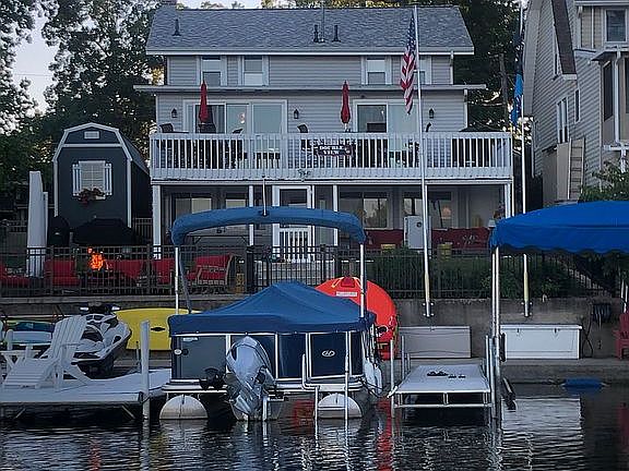 LAKE WEBSTER LAKEFRONT Lovely year round lakefront or fun lake home has 4 bedrooms, 4 baths, 2 kitchens. Kept some of the awesome charm of a lake cottage, but added some excellent updates throughout. All new updated kitchen lower level, granite, appliances, PEX plumbing, large concrete parking pad roadside, huge storage shed. Beautifully fenced. Multiple outdoor spaces (two levels of deck & waterside lounging area) overlooking the water, perfect for entertaining. Beautiful lake views. In todays' market, this shouldn't last long...if you are wanting a great lake place...call for your tour now. The 'Double View' lake place offers views front and back! A rare find.