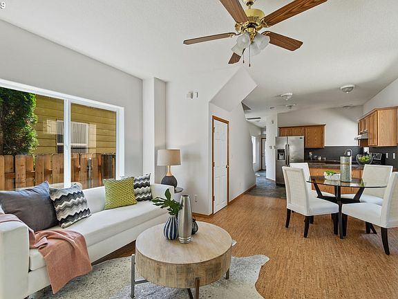 Easy living in Kenton. Newer construction home in desirable area close to the downtown Kenton shops, restaurants and amenities. Updated with cork flooring throughout and a chef's kitchen complete with stainless appliances and a gas range. Open floor plan connects the kitchen, dining and living room. Great "patio yard' perfect for BBQs and a small garden. Recently painted main floor makes this one light & bright. Great home! [Home Energy Score = 8. HES Report at https://rpt.greenbuildingregistry.com/hes/OR10057657]