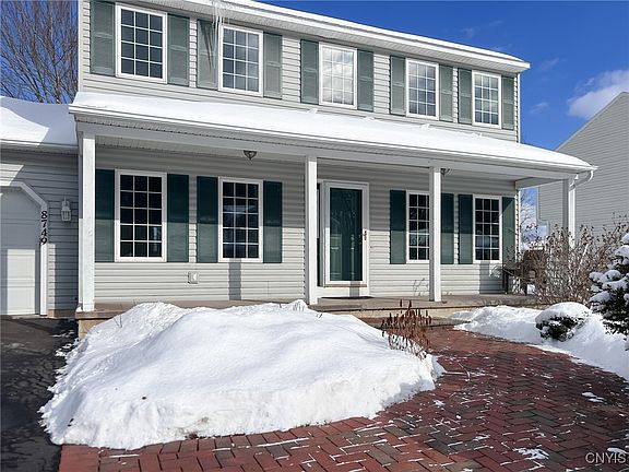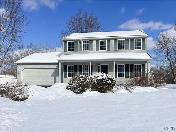 Tremendous opportunity to own this spacious 3 BR 2.5 BA colonial home in Brewerton! The main level of this home offers a large family room with gas fireplace, an eat-in kitchen, dining room and living room. This level also has laundry and mudroom entry from the garage and a half bath. Upstairs, you will find a nicely sized primary bedroom with a large walk-in closet and two additional closets. There is also an en-suite bathroom with walk-in shower and jacuzzi-style tub. There are two additional guest bedrooms and another full bath on the second floor. The basement is a blank canvas for future finishing! This home has a fully fenced yard that is adorned with a pond, gazebo and lavish landscaping. Some updates include an 8-year-old roof, electric updates, new sump pump with battery back up, new dishwasher, and more. With over 2,000 SF of living space and almost half an acre of land, this home has so much to offer!