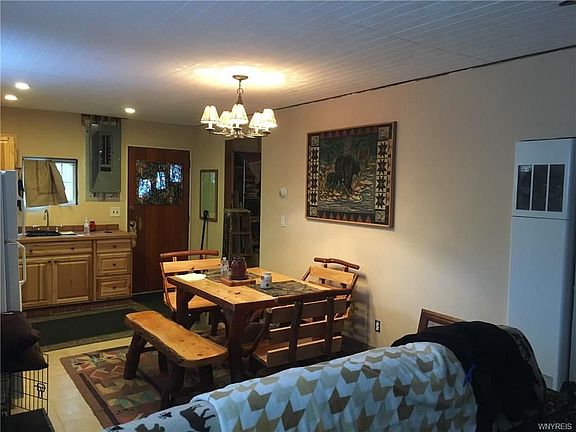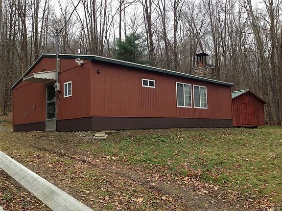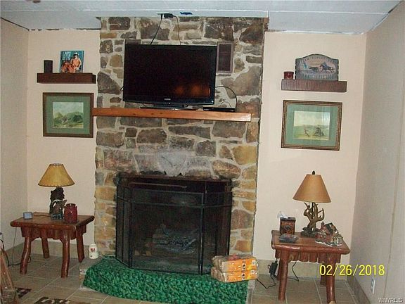 COME TO THE COUNTRY! AND YET....VERY SHORT DRIVE TO 4-SEASON RESORTS, CASINOS AND ALLEGANY STATE PARK. GROCERY AND SPECIALTY SHOPS NEARBY AS WELL. THE BONUS IS THIS 2 BR CABIN WHICH IS TOTALLY RENOVATED, IN VERY RECENT YEARS, WITH NEW ELECTRIC, PLUMBING, APPLIANCES, CERAMIC TILE FLOORING THROUGHOUT, WINDOWS AND ROOF. (SOME FINISHING TO BE COMPLETED; MATERIALS ON SITE). TOTAL ELECTRIC (REASONABLE MUNICIPAL ELECTRIC) AND A WOOD BURNING FIREPLACE CURRENTLY WITH ELECTRIC FLAME INSERT. SELLER WILL NEGOTIATE TO INCLUDE NEW AND RUSTIC LOG FURNISHINGS. ADJACENT STATE LAND IS A BONUS!! DON'T MISS OUT! IDEAL FOR YEAR ROUND LIVING OR VACATION GET-AWAY STEPS FROM STATE FOREST!
