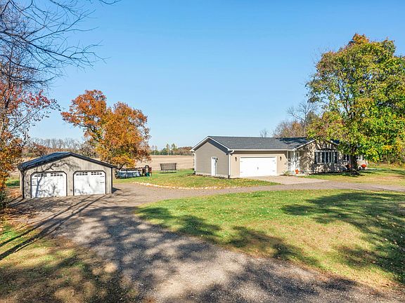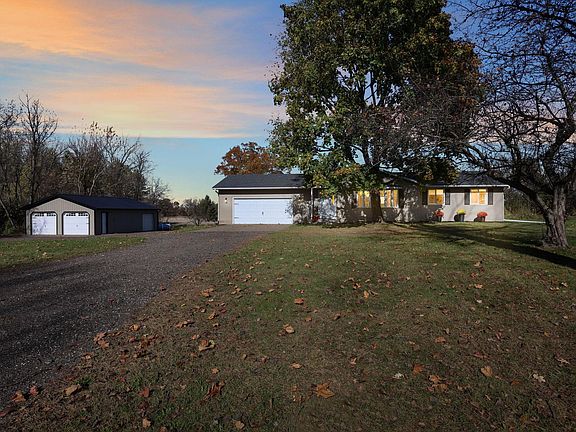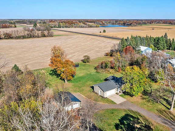Located on a quiet dead-end road, this 3-bed, 2-bath rambler offers privacy and convenience just minutes from the town of Cambridge and Isanti. Enjoy main-level living with 3 bedrooms and laundry on the main floor. The unfinished basement includes an egress window, providing the option to add a future bedroom and expand living space. Roof and siding replaced on house in 2022, plus a water heater replaced just 1 year ago, offering valuable peace of mind. Property backs up to an open field for added privacy and views. Spacious 24x35 detached garage with new steel roof from 2022 provides excellent room for vehicles, storage, and hobbies. Hard to find acreage close to amenities. Peaceful country living with in town convenience!