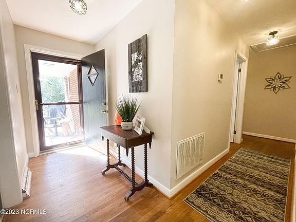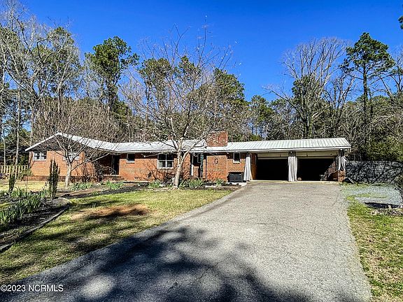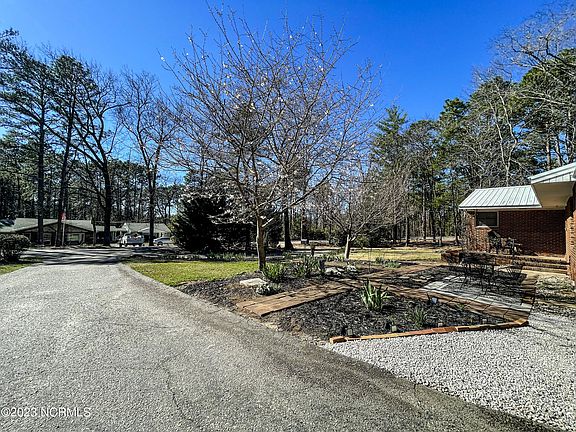 What a Find!! Lovely restored home in Southern Pines, within walking/biking distance to all the Downtown Southern Pines area has to offer! Restaurants, bars, shops, churches, parks, etc! Also, a mere 1 mile drive to the E. Connecticut Ave Gate onto Ft Bragg! The home sits on a large, well kept lot, with plenty of privacy in the backyard. The covered carport keeps you dry on rainy days. Clever layout with formal dining room just off of the kitchen, with large living room in the back. The following renovations/upgrades have recently been made: Metal roof, 2012,; Electric heat pump (heating & cooling), 2018; Hall bathroom remodeled, 2022; Wood-Burning fireplace & chimney professionally cleaned, 2022. Easy to show!