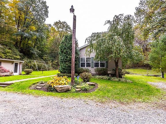 Private Beautiful Modular Located in Moon School District!! Huge Detached garage! The family room has built-in shelves with a wood burning fireplace. The master has a spacious bedroom with private bath. Open concept that connects the family room and dining room. Deck over looks the spacious flat yard surrounded by woods.