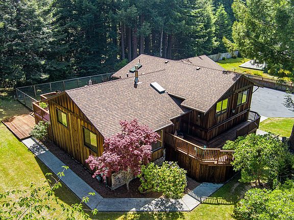 nestled into a pristine redwood grove in the upper California Ave. neighborhood, and additionally features a triple car garage with a 1/4 bath, as well as a triple car detached shop. Also included is the kohler automatic generator for any power outage surprises.