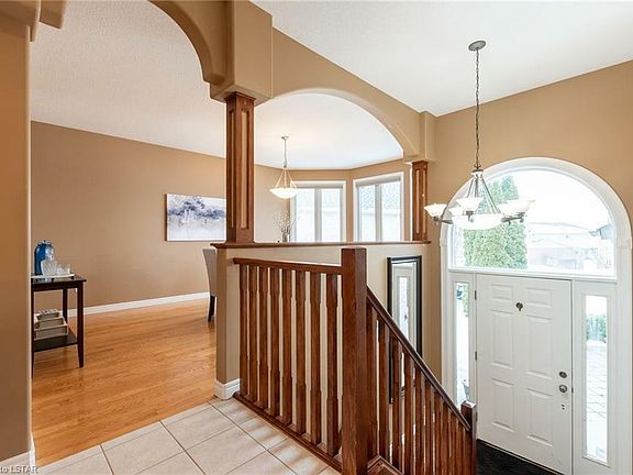 A RARE FIND! This custom raised ranch originally built by the builder for themselves is situated on a premium pie shaped lot, backing onto green space in desirable Westmount. This home boasts 1856 square feet of custom designed space on the main level alone. Some of the features of this 3 bedroom, 3 bathroom all brick home are a matching brick house that could be used as an extra garage, workshop or future pool house. The building has entry through double doors at the back of home. Other features include stamped concrete patio, partially covered deck off the side of the home which is convenient for BBQ's or that glass of wine after dinner. Oversized double car garage, slate floors, oak stairs, oversized windows, 9 ft. ceilings in the partially finished basement, Inviting 3 sided gas fireplace in the open concept living area. Warm hardwoods on the main floor. The master bedroom has a walk-in closet complete with ensuite jetted soaker tub and glass shower. Lower level family room (20ft X 24ft), energy star heat recovery system. Lower level has separate entrance from garage, providing the perfect space for a granny suite for potential extra income or additional family members.