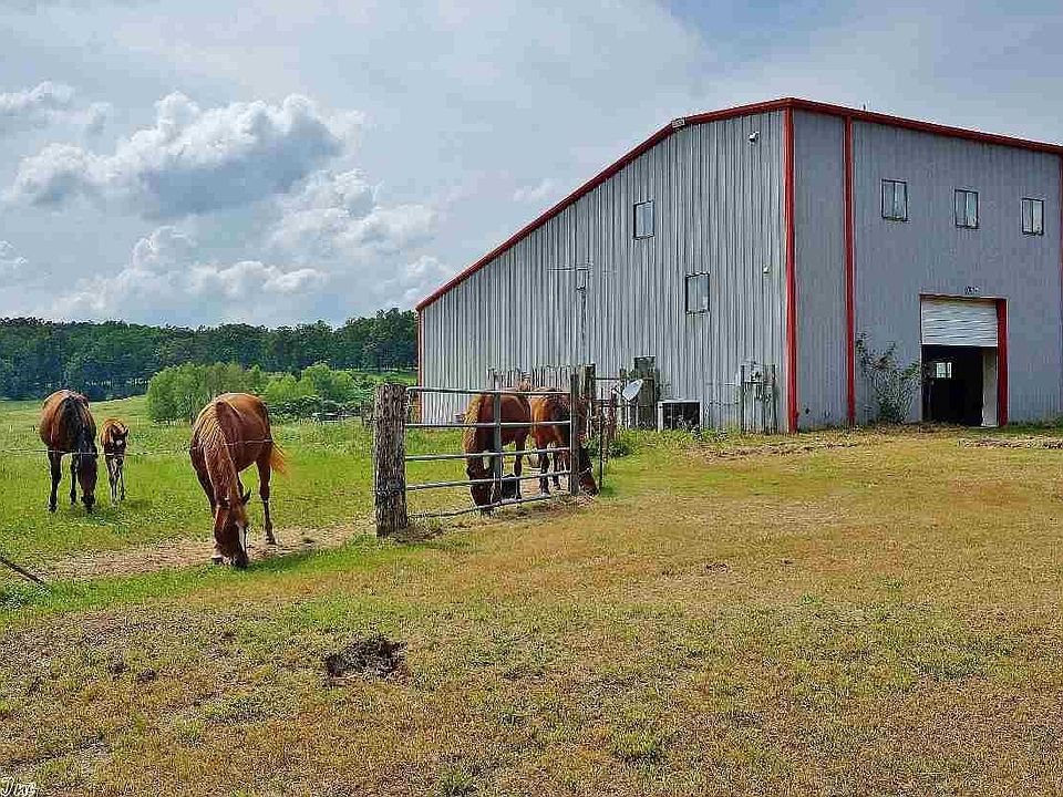Welcome all horse lovers! This 35-acre farm features a 40'x60' metal building with 6 large foaling stalls with auto waterers, feed room, office, half bath, horse stock, and sink area on ground level. Upstairs you find an 1100 sqft living space, complete with 2 bedrooms, 1 bathroom, kitchen, dining room, and living room. Windows in living room look out over foaling stalls. This property was once an Arabian horse farm. Deep, spring-fed pond. Beautiful views. Seller does not own minerals. Sold "AS IS"