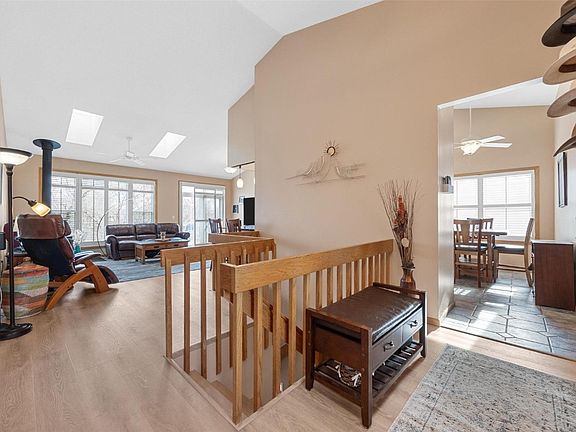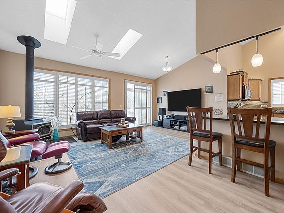Prepare to be surprised by the incredible updates featured in this 3 bedroom,3 bath walkout ranch in Hiawatha. A new front door into the vaulted great room sets the tone for the entire home, with new LVP flooring, wood stove, and 2 skylights. The kitchen is a true standout, showcasing all newer appliances, tile flooring, island, pantry, and stunning granite countertops. Every detail in this home has been carefully considered, creating a space that is not only beautiful but also highly functional. The owner's suite in this property boasts luxurious features that cater to both comfort and convenience. The walk-in closet provides ample space for storage, while the private bath offers a tiled walk-in vertical spa shower with elegant glass doors. The tile flooring adds a touch of sophistication to the overall design, creating a spa-like atmosphere that is perfect for relaxation and unwinding after a long day. The second bedroom also offers plantation shutters and window seat. Moving to the lower level walkout family room, you will find a cozy space that is perfect for gatherings or quiet nights in. The focal point of the room is the fireplace, which is complemented by a built-in bookcase for added charm and functionality. This space offers a warm and inviting ambiance, making it the ideal spot for entertaining guests or simply enjoying a quiet evening at home. A third bedroom with adjacent bath is ideal for guests. In addition to the impressive features mentioned above, this property also boasts a range of modern amenities that enhance the overall living experience. The inclusion of solar panels speaks to the owner's commitment to sustainability and energy efficiency, offering potential cost savings and environmental benefits. Furthermore, the new windows, furnace, A/C & Generac generator & electric car charger further contribute to the property's energy efficiency, ensuring that residents can enjoy a comfortable living environment year-round. These updates not only improve the property's functionality but also add value. Did I mention the sauna that also remains or the fenced yard and private rear view? Don't miss out on the opportunity to make this impressive property your own. 2 yr old furnace is heat pump with gas auxiliary.