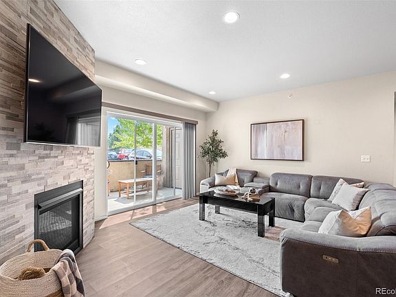Get ready to fall in love with this move-in-ready condo. Step inside to discover a spacious open-concept layout. In the living room, an upgraded gas fireplace sets a warm and inviting tone, perfect for cozy evenings. The spacious kitchen comes complete with stone countertops, stainless steel appliances, and ample counter space. There is even space for a dinette in addition to the bar seating. Each of the 3 bedrooms and 2 full bathrooms are incredibly spacious, with the primary suite offering a generous layout complete with an ensuite bathroom and a walk-in closet! A spacious in-unit laundry room with extra storage adds to the convenience and functionality of this home. Outside, an extra-large covered patio provides the perfect spot for enjoying your morning coffee or some fresh air. You'll also find an extra storage closet on the balcony and two dedicated parking spots. This condo is ideally situated just 12 minutes from Downtown Denver, 30 minutes from DIA, and offers easy access to I-70. Plus, with plenty of parking space available for both you and your visitors, you'll never have to worry about finding a spot. Don't miss out on this gem – it's ready to welcome you home!
