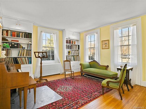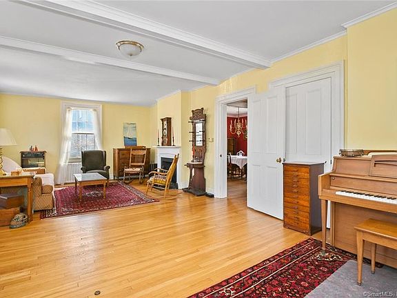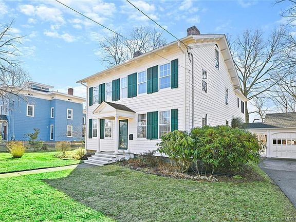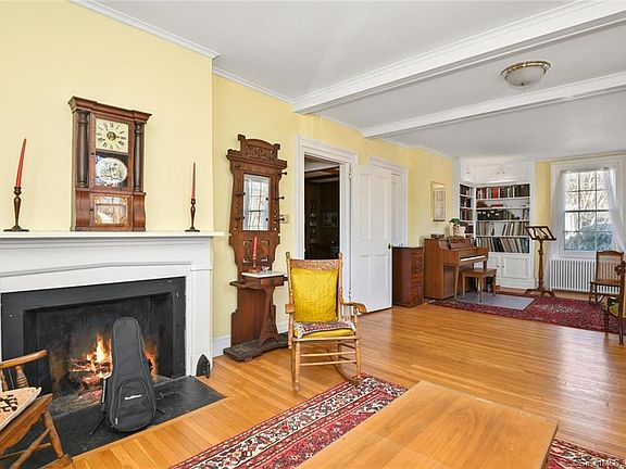 Magnificent 1880 Colonial set on half acre in beautiful Historic District.Great location within walking distance to train, library, restaurants. Elegant light filled living room with fireplace and built in bookcases. Formal dining room with fireplace,built in hutch, and cabinet, crown molding. Wood paneled den has coffered ceilings and a full bath, possible in law set up. Open concept kitchen with lots of cabinets and stainless appliances. Sunny family room with skylights overlooks level fenced yard . Four large bedrooms and two full baths on second level as well as a cozy office area and walk in closet. Walk up attic has full size windows and lots of storage. Full dry basement has fireplace with beehive ovens. Laundry room on main level. Central Vacuum. Two gas furnaces for zoned hot water heat. Newer hot water heater, 200 amp electric service. Hatchway to backyard. Two car garage with electricity. Beautiful brick patio and covered deck. This welcoming home has been truly loved throughout the years.
