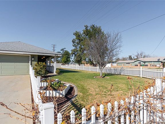THIS IS THE HOUSE TO SEE AND SHOW!! Where do I start?? On a quiet street, a corner lot, a truly beautiful home. Located 2 minutes from the 10 and 60 freeway and 15 minutes from Morongo Casino and Desert Outlet mall, you will walk in from the entry to a cozy living room with crown molding,a bay window, surround sound, a fireplace and wall mount ready for your TV. There are Plantation shutters thru out .Soft designer paint colors in every room. The kitchen, completely remodeled in 2014 is a cook's dream. Plenty of counterspace, an island, high end cabinetry with pullouts in most lower cupboards. Granite counters with beautiful glass tile backsplash. KitchenAid oven and microwave installed 2021, Dacor stovetop with 5th super burner. The cutlery set mounted over the stove top stays. KitchenAid refrigerator stays! Open any cabinet or pull out any drawer, there are more kitchen surprises. Primary bedroom is spacious with French doors leading out to the back patio. Double closets with mirrored doors. the primary bath sports a jacuzzi tub. The laundry room and second bath also were remodeled in 2014. Laundry room to die for! Washer and dryer stay with purchase. Granite counters and glass tile backsplash that match the kitchen, utility sink and a large pantry complete this room. Air conditioning unit replaced 2021. Solar panels (24) also installed 2022 and are paid for. Add on a nice covered back patio, a cozy front porch and fully drywalled garage complete with plenty of cupboards for every need and a second refrigerator, new vinyl fencing in back yard with front and back gates, the back gate allows for alley access you have the complete turnkey package ready and waiting for you to move in!!