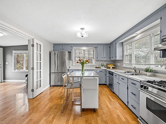 If you are searching for a home with extra space for all your needs look no further than this well kept home in the desirable North Medford area, minutes to Boston. As you enter you will find the livingrm open to dining rm with lots of sunlight & hardwood flooring. The kitchen is spacious with modern gray cabinetry, large double windows, ss appliances, gas cooking and french doors leading you into what used to be a first floor master w half bath and now is used for office space. On 2nd fl you will find master bedroom with high ceilings, another bedrm and full bath. The partially finised basement has plenty of storage, laundry space, plus two finished bonus rms (one used to be bedroom) used for tv rm & home gym. There is exterior access to the fenced in backyard w new large DOUBLE trex deck to entertain all summer long with a level yard with plenty of space plus a storage shed.