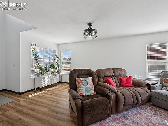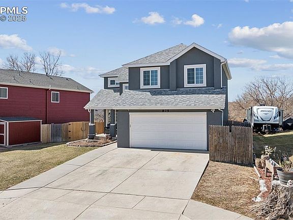 This impressive 2-story home offers 6 bedrooms and a thoughtfully designed layout, perfect for comfortable living. Fresh interior paint and a durable stucco exterior add to its appeal. The main level features a cozy living room with a fireplace, while the kitchen shines with stainless steel appliances. Upstairs, four spacious bedrooms provide plenty of room for family or guests. Enjoy central air for year-round comfort. Step outside to a generous backyard that backs to open space, offering privacy and scenic views. Ideally located just minutes from shopping, dining, and Fort Carson, this home is a fantastic find!