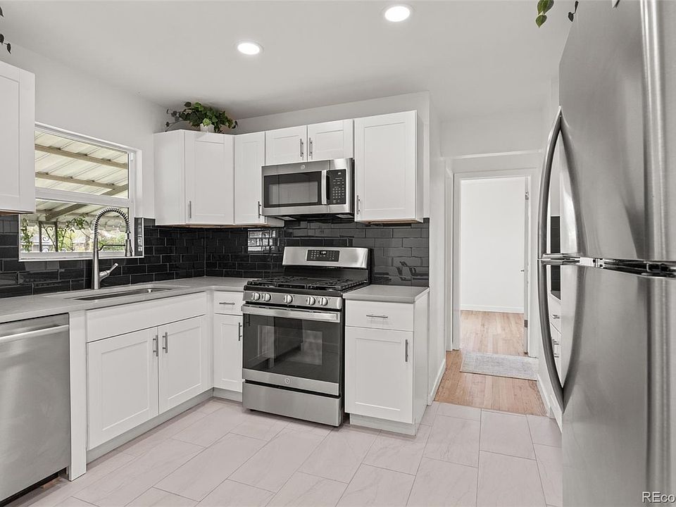 [Open House on Saturday 5/11/2024 from 11 AM to 1:45 PM] Gorgeous 2 bed 1 bath 1-car garage home on a corner lot. This house has been remodeled with plenty of high quality upgrades. This house features refinished hardwood floors (in the living room, dining area, and bedrooms), all new energy efficient windows and storm door, new paint throughout, new water heater, newer roof (2 years). The living room is light and bright and spacious.The kitchen which is open to the dining area has ample brand new cabinets, two pantries, quartz counter tops, backsplash, new stainless-steel appliances, and a tile floor. The bathroom has a new tub, tile floor/walls, and a new vanity. This house is on a large corner lot with potential to add a bedroom and bathroom (easy access to tap into plumbing through the crawl space). This neighborhood is benefiting from the growth and revitalization of the nearby Anschutz medical campus. Easy access to Del Mar Pool, Park & Recreation, Anschutz Medical Campus, I-225 and 6th Avenue, Lowry Park, Aurora Hills Golf Course, shopping, light-rail/buses, and DIA.