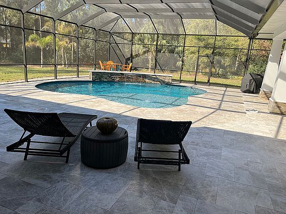 2.5 Acres in a most desirable gated community in a private location but minutes from everywhere. This amazing home is from the award winning Sater Luxury Design Collection and Built to South Florida Hurricane Standards. Featuring 3 bedrooms and a den/office or 4 bedrooms. The Exterior is Stone and Stucco with a pleasing front porch, 8 Ft Entry Door, Perfect sized Foyer opening into a spacious open floor plan with the Kitchen overlooking the Great room , breakfast nook and Office/Den with stylish Barn doors adorning the opening into the Office/Den. The Bedrooms are all split each having super closet space and a private Bathroom. plus recessed lighting and a ceiling fan in all of them.The Awesome Kitchen features slow close Kraftmaid Cabinetry, Granite Counters, Oil Rubbed Moen fixtures, instant hot water at the sink, SS Appliances stay with home, Under cabinet lighting, Upscale backsplash that is very beautiful and 2 huge pantries. Every person needs that! The Laundry room is huge with recently added custom cabinets and granite countertops perfect for all your folding space needs plus more closet space. There are closets everywhere in this home. Large Master Suite Boasts his and her walk in closets with a California set up, Bathroom has lovely cabinetry, granite counters, a Huge open shower and his and her vanities. The 4 car garage is 24 ft deep with 8' doors and Jack Shaft garage door openers with Blue Tooth. 12' ceilings in the garage and wired for a welder and lift. The pull down stairs in the garage have a 12' aluminum ladder. and epoxy finish on the floor. The garage trusses are engineered for storage. The attic has decked flooring with lighting and walk around storage space. Custom designed pool with sun shelf, bubbler and waterfall feature. 3200 sq ft of French travertine pool deck. Elite paneled extension for a covered hot tub area. A 32 x 52 custom detached garage thats 20 ft. tall, big enough for your boat, RV or toys! Built to match the home. Stucco and lifetime architectural shingles. Entire building has been spray foamed. Garage is equipped with 12 x 14 commercial roll up doors with commercial gear driven door openers. Designed to be a pull thru garage with a rear exit to a private gate. It’s wired with 110 and 220. The detached garage has 8 led halo lights hanging from the ceiling . The Garage floor has been finished with high grade heavy flake hi gloss Epoxy. This garage can be what every you want it to be ! It’s a show piece of is own. Other features you want to know about are: ** ALL FLOORING EXCEPT WET AREA HAVE AN AMAZING HICKORY ENGINEERED LUMBER FLOORING THAT YOU MUST SEE IN PERSON...JUST GORGEOUS! **BEAMED CEILING TREATMENTS ** UPSCALE LIGHT FIXTURES** UNDER COUNTER LIGHTING ** 19 DIMMERS THROUGHOUT HOME ** 66 LED BUG EYE LIGHTS ** TOE KICK LIGHTS IN BATHROOM ** R 38 BAT INSULATION ** ALL WINDOWS CASED IN WOOD FOR A BEAUTIFUL FINISHED LOOK **ALL MOEN FIXTURES THROUGHOUT HOME ** 10' to 12'8" CEILINGS THROUGHOUT HOME** ALL 8' DOORS** 6 INCH BASE BOARDS ** BUILT IN'S IN THE GREAT ROOM ** 50 GAL HYBRID WATER HEATER **DUAL PANE TINTED VINYL WINDOWS ** 30" SOFITS **ALARM SYSTEM WITH CAMERAS STAY WITH HOME **SPRINKER WELL ** SPRINKER SYSTEM **CITY WATER (WATER BILL ABOUT $17 PER MONTH) **ELECTRIC OUTLET IN FRONT EVE FOR CHRISTMAS LIGHTS**PRIVATE BACK GATE ONTO ROAD **UNDER GROUND UTILITIES **PATIO WITH FIRE PIT **FRENCH DOORS WITH BUILT IN BLINDS** HUGE BACK LANAI WITH BEAUTIFUL WOOD CEILING** TWO 17 SEER AC UNITS. **GARAGES ARE SIDE ENTRY. This is not a cookie cutter home. The quality is there to see, almost new home barely lived in. No other home in the community for sale. Near Shopping, Hospital, Dining and I-4 , Beaches and Orlando about 30 minutes away in either direction.