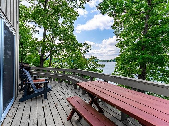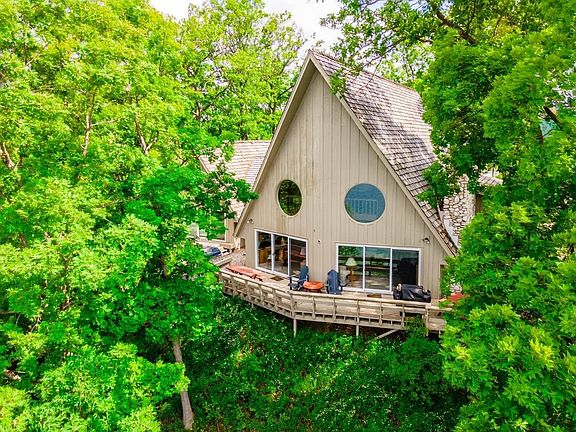 434' of lakefront on Lake James. This includes the whole west end of Eagle Island (seven platted lots). A truly unique and gorgeous setting with elevated and panoramic views of 3rd basin. A once in a lifetime opportunity, as properties on this shoreline rarely come available. Large boulders and slab stone steps greet guests and lead them to the front door of this one of a kind home. The foyer entry with skylights and lakeview separates the primary owners suite from the rest of the home. The great room features a wood cathedral ceiling, a fireplace, two sets of sliders and is open to the dining area, kitchen and second level. The views are like no other. Off the dining area is a screen room that leads to the lakeside deck. The private primary suite has its own heating/cooling system, access to a deck with hot tub, his & her closets, his and her vanities, a jetted tub and separate shower. Two guest bedrooms, full bathroom and laundry room on the main level of the home. Upstairs an open landing overlooks the living room and is set up as an office. You'll find two more guest bedrooms, a shared closet and a full bathroom. The lower level has a workshop, half bathroom, hobby/craft room and a mechanical room. The property is surrounded partial by a concrete seawall, large boulder stone seawall and a pebble stone beach area near the screened gazebo.
