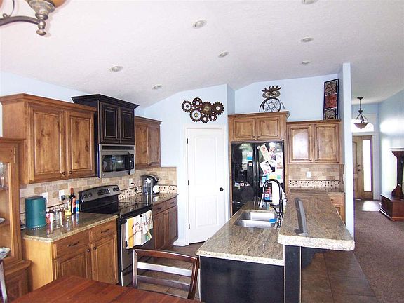 Sharp home with great views to South, walk-out basement plus extra storage off back of home, great master suite with huge walk-in closet. Big laundry room on main floor. Room in basement to finish 2 more bedrooms. Third bay in garage extra deep with work area. Hot tub negotiable.