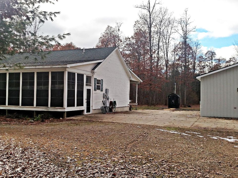 Looking for Recreational Land just off US10 but yet peaceful and quiet! Walking-biking distance to the lovely Gooseneck Lake (a wonderful lake to kayak and perhaps you will be fortunate enought to see the loons!) 3 Bedroom/2 Bath Ranch home situated on 10 wooded acres with a beautiful rolling hill terrain. The addition of the all season rooms expands the space and brings the outside in. There is a large private master suite with an office or dressing room, walk in closet, and bathroom suite with jetted tub, low step shower, & dual sinks. This home features an open floor plan, spacious kitchen with snack bar & pantry, extra storage space, and large closets throughout. There is a 30x40 Pole Barn, RV Cover or Pavillion, and an additional 2 stall garage with a lean-to.
