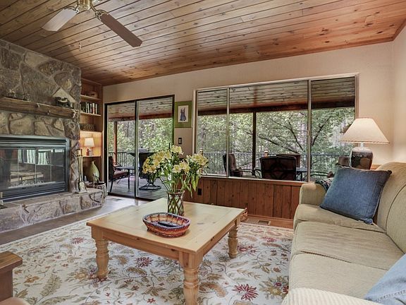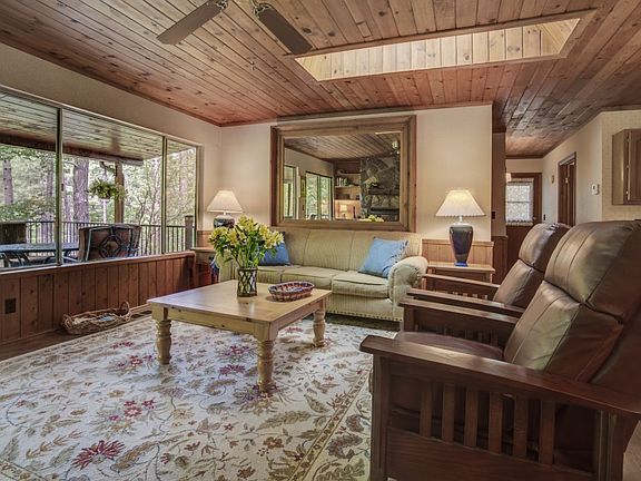 RIVER COMMUNITY LOCATION CABIN CLOSE TO THE NATIONAL FOREST! Escape to this tranquil location and enjoy the serenity of nature, listen to the sound of the river and wind through the pines. This beautifully updated 3 bedroom/2 bath cabin has laminate wood-look floors, stone fireplace, updated kitchen and baths, dining area with views, split floorplan with large master bedroom and two guest bedrooms, downstairs work shop, dog run and huge covered/uncovered deck to enjoy nature, proximity to an easy walk down to the river or into the National Forest. Also close to Kohl's Ranch for dining and entertainment ease. River-community homes are a rare find in this area -- relax on the deck in the evening and looking to the skies where you will see galaxies of stars. This home is being sold ''Turn-Key" furnished/decorated and would be an amazing VRBO opportunity