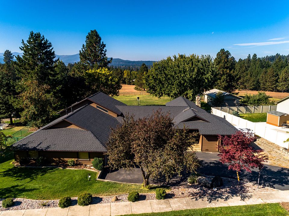 GORGEOUS COUNTRY SETTING ONLY MINUTES FROM DOWNTOWN & LAKE COEUR D'ALENE. This Gem on 1.31 ac in coveted Fernan Hill area has unobstructed Mtn Views, flat wide open acreage & NO CCRs. This stunner delivers with 18 ft. beamed living room ceiling, gorgeous rock fireplace & high output wood burning stove. Cook's dream kitchen! Main Floor Master, Formal Dining Room, Breakfast Nook, Mud Room, Workout/Game Room. Hardwood floors & solid wood doors/cabinets/trim & granite top off the interior standards. Attached 3 car garage is heated, oversized & finished. 50 year roof, cedar siding, 2 water features, 6 person hot tub, fenced garden with raised beds, 24 x 36 shop/barn. Mature fruit trees & landscaping. Outbuildings for chickens, goats, lambs, pigs, turkeys. All city services. This is the one.