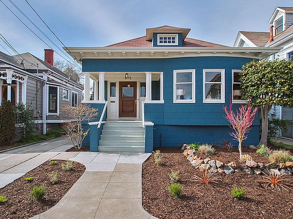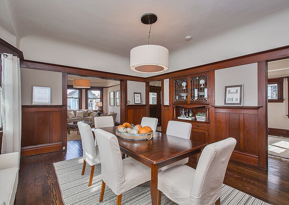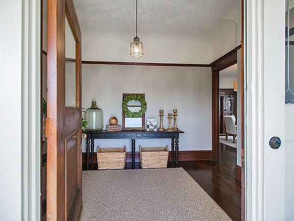Built in 1905, this Craftsman home exemplifies the Arts and Crafts design and detailing both inside and out. The home features a formal foyer, formal living room, formal dining room, two bedrooms, one full bathroom, one half bathroom, eat-in kitchen, laundry area, finished attic and a detached barn in the gorgeous back yard. This property is a vintage home-lover’s dream that features leaded glass, newly refinished original hardwood floors, picture rails, plaster walls and high, coved ceilings, reconditioned hardwood-paneled wainscoting, beautiful window and door casements, original built-ins and a stunning Arts and Crafts fireplace. The master bedroom has the same wonderful Craftsman details and styling found in the rest of the home, and overlooks the barn and a beautiful magnolia tree in the picturesque back yard. Stairs lead up to a spacious finished attic that offers natural light, new carpeting, and is perfect for a home office or play space. The attic also lends a vision of the potential for a future full second story addition. A special feature of this home is the vintage barn that is situated in the wonderful back yard. The barn is ideal for a family room, teen hangout, playroom, office, or simply relaxing and savoring the unique space. Completely fenced for privacy, the large back yard has a lawn, raised vegetable bed, persimmon tree, fig tree, lemon tree, additional drought tolerant ornamental landscaping, and a large patio beside the barn, perfect for enjoying outdoor dining and entertaining.