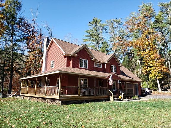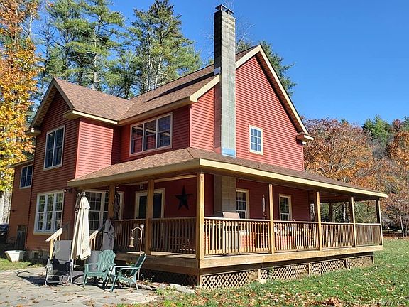 Riverside Dream! Welcome home to this Custom Farmhouse on the Neversink River! Home features LR w/pellet stove, open DR/ kitchen w/ hickory cabinets, granite countertops & SS appliances, master bedroom suite offers full bath w/soaking tub, 2 add'l bedrooms, 1.5 baths, laundry rm & BONUS room w/ reclaimed barn wood. (Could easily be remodeled into another master suite). Red oak & slate floors, barn beams & reclaimed & customized materials through out, full basement waiting to be finished w/ materials on site, Central AC, wrap around porch, bluestone patio, gazebo w/ 10 person hot tub, dog kennel, & stairs to the river. Parcel is designated UNIQUE & owns to center of the river, adjoining (included) buildable lot w/ well also featured. Not in a flood plain. Automatic generator, 2 car garage & so much more! Less then 10 minutes to Otisville train station, close Casino, Kartrite waterpark, area skiing & more. Enjoy fishing, wading, floating & watching the Eagles soar from your own backyard!