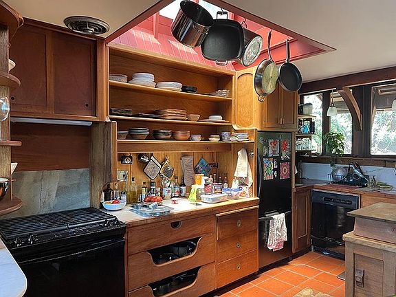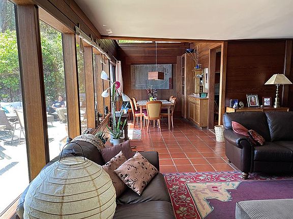 This home is a redwood tour de force. It enjoys extraordinary privacy with a sweeping bay view west and south including the Golden Gate bridge, San Francisco, Angel Island and more. North of the house is Chevron Open Space shared with Osprey, Great Horned Owls and Red Tails. There is a huge hot tub off the large bay facing decks. There is a sunny level space to grow vegetables. It is romantic, dramatic and old. It is unfurnished. No beach access is provided on the property. Approximately 1800 sq ft not including the 150 sq ft basement laundry/storage room. It's a 3 separate bedroom house, each bedroom having an additional room within it. Two of these double rooms have separate entrances. 2-1/2 bathrooms. There is a large stainless utility sink outside the downstairs bathroom. Most of the flooring is Saltillo tiles and one of the rooms has wood floors. Stained glass throughout. Custom cabinets made of old growth redwood, teak and mahogany. The kitchen was featured in Sunset Magazine in 1974. Small single car garage/workshop plus driveway space for one car Utilities: PG&E paid by tenant. Water and weekly trash services paid by Owner. High speed internet included. Cats accepted with deposit, no dogs Last months rent due at signing.
