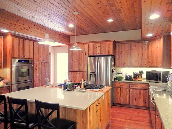 - Fireplace features: wood stove
