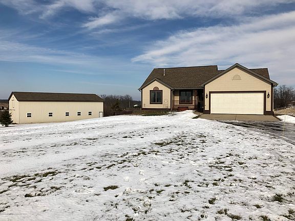 This beautiful home is just waiting for its new owner. The entire 14.66 acres is completely fenced in, along with 4 separate horse pastures. The horse barn is set up with 8 separate stalls that are immaculate, along with an overhead hay loft, and feed shoots for each stall. The home is also beautiful with a walkout finished basement, and fully furnished with all the appliances. There's also a separate barn for the rest of your toys. Schedule your private showing today.