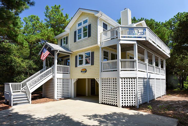 This 4-bedroom, 3.5 bath residence is located on a quiet cul-de-sac in the private community of Monteray Shores. Only ever a second-home, it boasts tastefully finished spaces and high quality finishes lending this beach home an air of casual elegance. Three of the bedrooms have access to the west-facing decks for enjoying Outer Banks spectacular sunsets over the sound. The ground level has a tidy carport, outdoor shower and dry entry. Mid-level begins with a tiled foyer leading to beautifully decorated bedrooms and a gracious open staircase. The top level has high ceilings crowning a open living/dining kitchen area with tons of windows for letting in all that Corolla sunshine. As a semi-soundfront homesite, this property currently enjoys pretty views of the water through the trees. Other amenities include a gas fireplace, tiled foyer entry, hardwood floors in the kitchen and dining area, custom tiled master bath, new roof and gutters in 2014 and new 3rd floor HVAC in 2015. Looks like room for a pool. See Assoc Docs for survey. Buyer to confirm with county and community officials for approval.