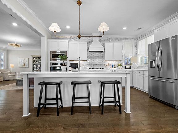This stunning 4-bedroom, 3.5-bath home offers a perfect blend of luxury and comfort with soaring ceilings, crown molding, and a spacious, open layout. The main-level master suite features a garden tub, separate vanities, walk-in closet, and separate shower, while three additional bedrooms and a loft upstairs provide ample space for family or guests. The gourmet kitchen is equipped with a gas cooktop, double ovens, stainless steel appliances, an island with a breakfast bar, and a walk-in pantry. With hardwood laminate and tile flooring, recessed lighting, a dedicated laundry room, and a three-car garage, this home is both stylish and functional. Set on a beautifully landscaped lot with a wide driveway and charming curb appeal, it’s ideal for modern living and entertaining.