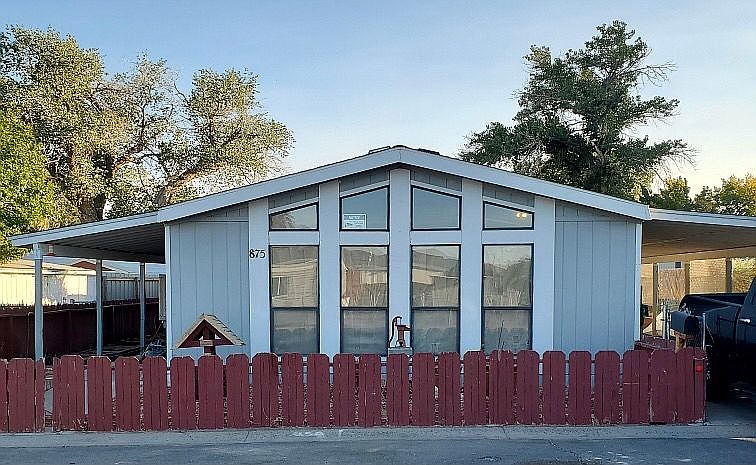 Beautiful modular home located in quite neighborhood in cul-de-sac. Great starter home for a small family. Home includes 2 bedrooms. Added bonus room that can be used as a bedroom, game room or office space. 2 bathrooms, Master bathroom has a huge garden tub! Backyard included open yard space, 2 large sheds and patio covering over car port and front entrance. Living room included 3 massive windows great to let in sunlight as well as added skylight in kitchen and lots of counter space for all your cooking needs. Home will include both washer and dryer as well as stove. All rooms have new paint as well as new carpet. Bonus room flooring all brand new as well. Large Swamp cooler cools house quickly in summer and heating throughout the house. To view home contact for available showing times.