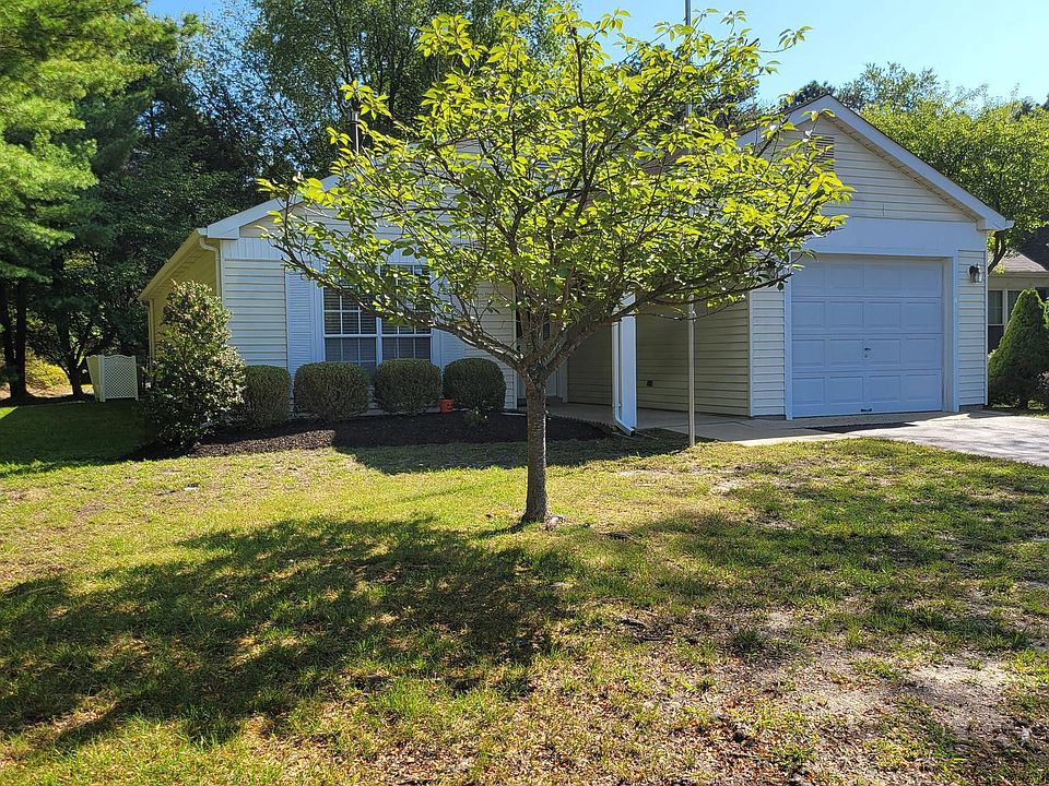 Fantastic opportunity to live in this carefree community in Leisuretowne. This 2 bedroom 2 bathroom property is located next to a wooded lot and backs up to woods. This tranquil location has a beautiful sunroom with a Cathedral ceiling with a palladium window and plenty of windows with natural sunlight. The brick GAS fireplace gives the room great ambience. The living and dining rooms have an open floor plan which create a spacious feel as you walk through the foyer viewing the 2 sets of French doors leading into the sunroom. The eat-in kitchen has a tiled backsplash, granite counters, and a gas range. The main bedroom features a walk-in closet and adjoining bathroom with plenty of cabinet storage. The laundry room has a GAS water heater and GAS Furnace. If you need additional storage, the garage has an attic access panel. The community has 2 clubhouses with in-ground pools, tennis courts, billiard room, racquet ball, and so much more! Come tour this property before it's gone!