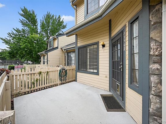 The fully fenced front patio offers a relaxing retreat, ideal for enjoying the beautiful Colorado weather. The attached 2-car garage offers additional storage, security and convenience. Additional amenities include additional guest parking, HOA maintained exterior and communal landscaping, a community pool and garden beds, mature trees, walking paths, and access to Nottingham park across the street.