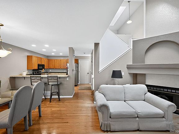 Welcome to this beautifully maintained townhome nestled right between Arvada and Westminster! Natural light from large windows and skylights fills this inviting home, from the comfortable bedrooms to the inviting and functional open living spaces. The main floor living room provides a cozy space to relax with soaring ceilings and a fireplace focal point while flowing seamlessly into the dining area which is large enough to entertain but comfortable for everyday use. The kitchen has ample storage between the cabinetry and pantry, and also offers a breakfast bar. This main floor also provides a half bath, perfect for when guests are over, a large storage space, and access to the 6-foot tall crawl space with a 12x20 foot cement pad that provides an incredible amount of storage space.