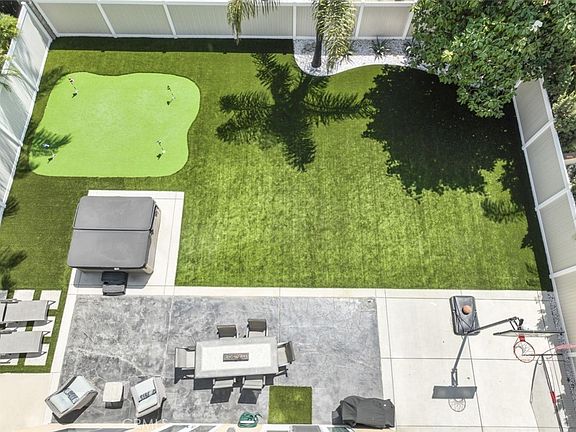 Stunningly finished 4 bedroom, 3 bath home with 3 garage spaces and a spacious immaculate back yard. Formal living / dining are has cathedral ceilings and many windows to allow for beautiful natural light. Kitchen beautifully finished in white cabinets, black and white granite countertops, stainless steel appliances, and a walk-in pantry. Luxury vinyl plank flooring in downstairs common areas, stairs. and master bedroom. Berber carpet in secondary bedrooms. Downstairs has full bedroom and bath perfect for multi-generational families or hosting guests. The upstairs boasts a loft and extra cabinet space for storage. The master is equipped with double-vanity, huge walk-in closet, and separate tub and walk-in frameless shower. The backyard is all newly renovated, low-maintenance, newer vinyl fencing and extra fun features include an 8 person hot tub with water feature, putting green, a beautiful patio, and additional cement space on the side. Laundry room includes a sink. Orangecrest is close to many amenities including shopping areas and Orange Terrace Park. This neighborhood also has no HOA and taxes are low.
