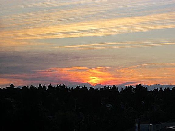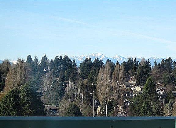 Stylish top floor corner unit with vaulted ceiling & lots of natural light. Expansive West facing view to Olympic Mtns. Open floor plan with private deck off living room & cozy gas FP with fan. Spacious kitchen & dining room. Upgraded doors, recessed LED lighting, granite & quartz counters & Hunter Douglas blinds. Full size laundry room, large storage & 2 pkg spaces in garage. "Very Walkable" location next to shopping, groceries, parks & restaurants. EZ freeway access & short commute to downtown