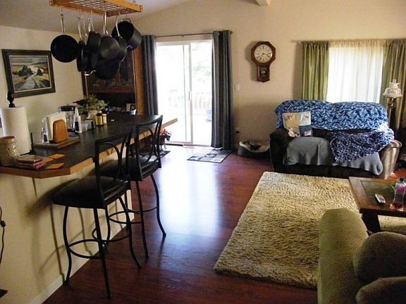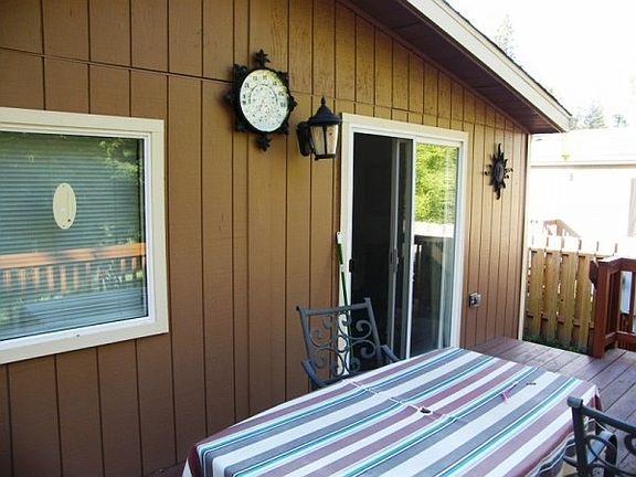 This jewel is setting along a green way area with walking paths, trees and wild life.The 10 X 23.5 foot deck in the rear of the home overlooks the peaceful surroundings and is so quite, great for morning coffee in the sun and afternoon B-B-Q's in the shade. The open living room 14 X 19, dining room 9 X 10, and kitchen with eating bar, all with laminate floors Plus sliding patio door looks out and over the deck. You will love the master bedroom 11.5 X 13.5 with 6 X 11.5 walk in closet and master bath with step in shower.The other two bedrooms at 10.5 X 11, each next to the second bath with one piece tub/shower. The carport covers the entry into the laundry room 8 X 11.2, 2 cars can park tandom, in the 15 X 21 carport. A storage shed 6 X 6. The furnace & A/C, roof, siding are 4 years old.A must to see at $58,700 with the BEST SPACE RENT in the area $450. PLUS water, sewer & trash.