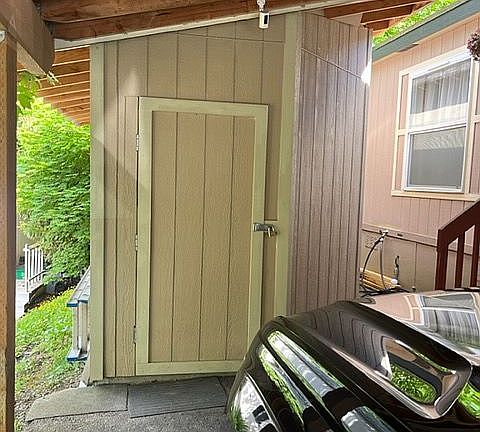 3 bd 2 bath manufactured home in nice quiet park. Our back deck faces the forest. Please note: the space rent of $695.00 is not included in the sale). Buyer(s) must pass a background check to live in the park. ($60.00 application fee for all adults over 18 paid direction to Happy Valley MHP) Newly remodeled kitchen with granite countertops and all matching Frigidaire appliances: refrigerator, slide in cooktop / oven, microwave and dishwasher. Washer and dryer included. Newer Pergo outlast laminate floor in kitchen, pantry living room and hallway. Carpets in 3 bedrooms need to be replaced. We have 2 velux skylights that open for fresh air. Some drywall needs to be finished at the skylights and the exhaust fan. We added a 10' x 15' storage shed on a concrete foundation. Covered parking in carport. Selling AS IS, NO WARRANTY.