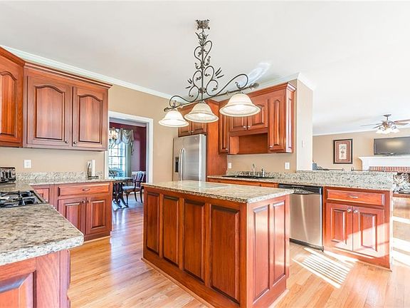 - Kitchen Features: Breakfast Bar, Cabinets Stain, Eat-in Kitchen, Pantry, View to Family Room, Stone Counters, Kitchen Island, Breakfast Room