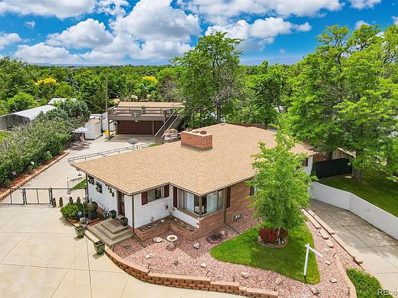 CALLING ALL CAR ENTHUSIASTS!! LARGE, HEATED, DETACHED 4 CAR GARAGE W/ROOFTOP PATIO ON OVER 1/3 ACRE LOT. PARK YOUR RV OR MULTIPLE CARS ON THE EXTENDED FENCED IN DRIVEWAY...BUT DON’T FORGET THE HOUSE...WELL LOVED RANCH STYLE HOME IN THE HEART OF LAKEWOOD. As you walk into this beautiful home, you’re welcomed with a breakfast nook and open kitchen with granite countertops, gas stove w/hood, island, large sink. All stainless steel appliances stay. Enjoy your coffee and basket in the morning sun in your enclosed tile/heated sunroom with the view of the back patio. Dining room is open to the living room with a double sided gas fireplace, hardwood floors, and large picture windows. Check out the mountain views! The main level primary and secondary bedrooms are large, w/ cedar closets!, and plenty of natural light. Nearby is a three-quarter bathroom with a beautifully tiled, large shower w/bench, built-in vanity with lighted mirror. The basement has an additional wood-burning fireplace and is currently set up as a large rec room, but can easily be conformed back into a large bedroom with additional living space. Great for guests or in-laws You’ll find another three-quarter bathroom with shower, Bonus area with a wet bar, and laundry room includes the washer and dryer. Attached one car garage has a separate room extended off the front of the garage which can be used as storage or workshop. The large well landscaped backyard with a patio makes this a beautiful oasis. DON’T FORGET TO CHECK OUT THE 4-CAR GARAGE W/ROOFTOP PATIO. (PLEASE DO NOT TOUCH ANYTHING IN THE GARAGE.) Tons of storage w/3 sheds. Close to 6th Ave, Belmar shopping, plethora of restaurants and parks. Home is sold with a 2-10 Supreme Home Warranty. Cameras on premises. Schedule your showing today.