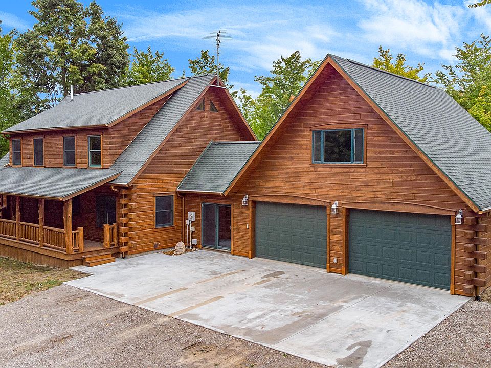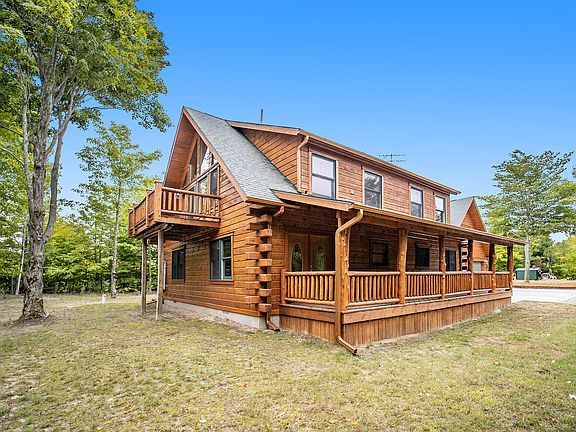 Full log 3 bed, 3 bath home on 5 acres north of Vanderbilt. Hickory hardwood floors in kitchen and dining room. Custom hickory kitchen cabinets. Jenn-Air type cook top stove with separate wall over. Huge formal dining room with built in cabinets. Spacious living room. Master suite with jet tub and private deck. Tile flooring in all 3 bathrooms. Baseboard hot water heat in main house with radiant in-floor heat in entry way and 2 x 6 log sided garage. Garage is foam insulated, drywalled and includes partially finished bonus room above. Covered front and back decks that run length of home. Outside wood boiler and horse corral on vacant land parcel. Lots to like in this custom built full log home located on private 5 acres.