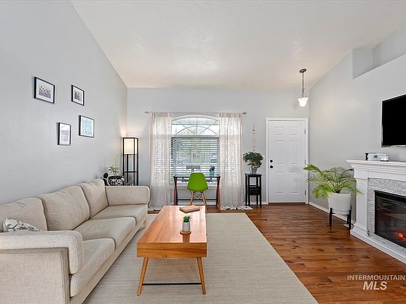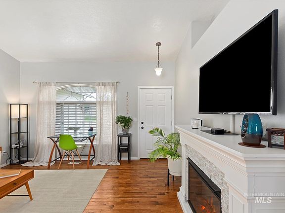 This gorgeous and sparkling S Boise home is ready for you! Located in the quiet, well established sub of New York Landing with sprawling mature shade trees this home has it all! Filled with an abundance of natural light, soaring ceilings, new hickory hard wood flooring, and an open concept split floorplan. Entertain in your spacious living room and kitchen with breakfast bar, brand new high end SS dishwasher with easy access to the backyard. Primary bedroom with private bath and large closet. 3 addl bedrooms and full bath. 4th bedroom is huge and could also be used as a bonus room. Soak in the sounds of the canal waterfall across the street, and enjoy a nice private, peaceful backyard with lush mature grass, chirping birds while you relax in your hot tub. NEW ROOF IN 2021! Located just a few minutes from parks, shopping, Costco, schools and downtown Boise! Come see all this home has to offer!