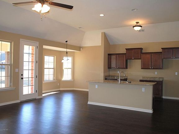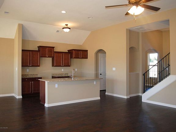 Stockton floorplan in Asbury Gardens features an open concept living space with hardwood floors & vaulted ceiling. The kitchen features custom cabinets, granite counters & stainless appliances. The large island opens the kitchen to the breakfast area & great room. Master Suite is down with vaulted ceiling, 2 closets, walk in shower, double sinks & Whirlpool. Bedroom and bath 2 are down with remaining up. Large 4th bedroom could be used as rec room and covered patio offers extra living space.