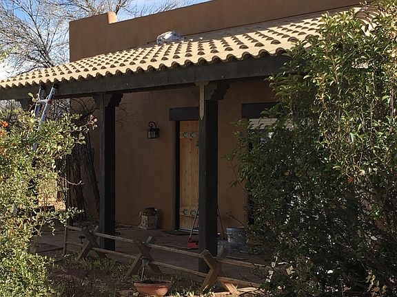 Private and peaceful Sante Fe home on 4.02 acres offers over 2100 sq ft of living area, 2 car garage with attached RV carport, RV hookup, animal pen, corral, fruit trees and a shed. Large L shaped covered patio offers shade throughout the day and large entertaining space. To the east are 900 acres and more open land to the south offering maximum privacy. Inside, the artfully designed space offers Aspen wood ceilings and cabinetry, a corner beehive fireplace, real marble flooring, lots of large windows with roller shade shutters, air conditioning, living room, dining room, and family room that could possibly be turned into a 3rd bedroom, and so much more! Call today for a showing or more information!