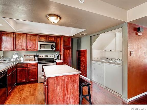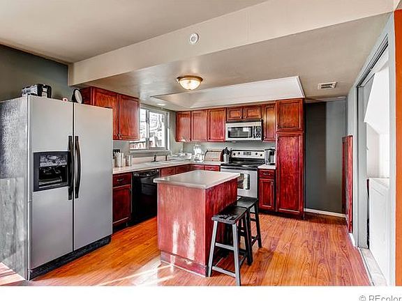 Come take a look at this incredibly spacious townhome in move-in ready condition! This unit is unlike any other in the complex from the reconfigured kitchen with it's open floor plan to the high-end upgrades in the master bedroom & bathrooms. The kitchen features Corian countertops, stainless steel appliances & hardwood floors. Other upgrades include newer double pane windows throughout, a newer front door & a newer furnace/AC unit. The master bedroom is the jewel of this fabulous unit with real hardwood floors, a walk-in closet & a European-style frameless walk-in shower. Enjoy your morning coffee on your private patio, which also features a large storage shed and direct access to your two reserved covered parking spaces! This family friendly community features a private pool, clubhouse, playground & picnic area for your enjoyment. You'll be close to shopping, dining, neighborhood parks & transportation, with super quick access to I-25, Hwy 36 & Federal Blvd. Hurry, don't miss out!!