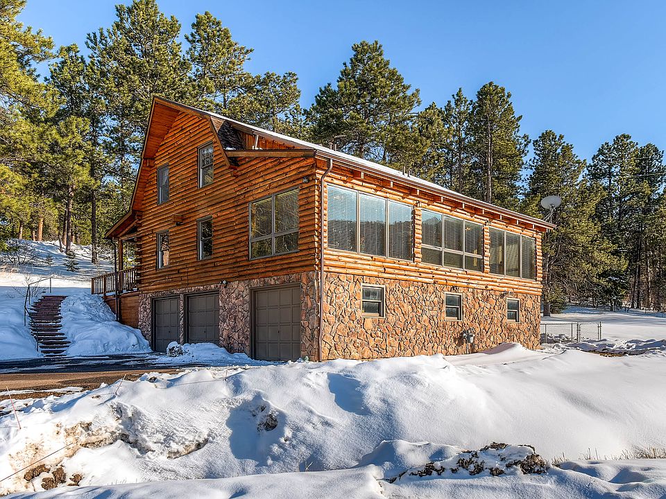 "Majestic Mountain Meadow" Beautiful Rustic Log Home situated among the Pines w/Beautiful Meadow Views!!! Just 1.2 Paved Miles off of Hwy 285 in The Homestead! 2 Stall Barn w/Fenced Paddock on 2.67 Acres of Grassland & Mature Trees! 4 Bedrooms & 4 Baths! Great Room Offers striking Openness & Flowing Entertainers floor plan! Rustic Log Interior walls, Cozy Wood Stove, Spacious Kitchen includes Newer Appliances! Den/Game Room & Flex Space for optional Formal Dining! Inviting 40' Sun Room w/Hardwood Floors overlooks the grassy Meadow! Relaxing Master Suite w/Vaulted & Open Beam Ceilings, Tons of Closet space, Master Bath w/Double Sink Vanity, Soothing Soaking Tub & separate Shower! 2 Additional Upper Level Bedrooms share Beautifully Updated 3/4 Bath. Finished Basement provides 4th Bedroom w/Half Bath, 2 Double Closets! Ideal space for Home Office, Home Gym, DIY Projects! Laundry Room, Mud Room! 4 Car Garage, Spacious Covered Front Porch/Deck! QUICK POSSESSION! It's Time to Enjoy The True Colorado Lifestyle!